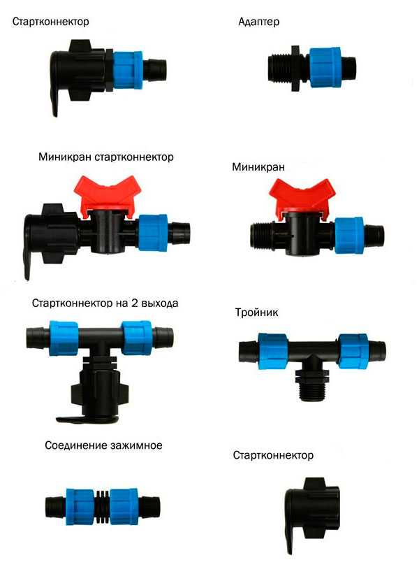 - Краники и переходники между капельными и магистральным шлангами.