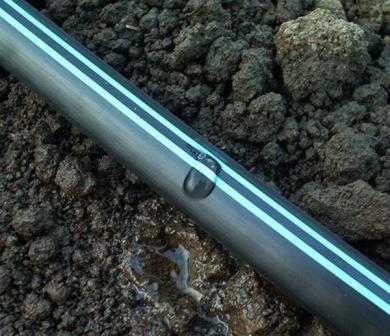 В трубе необходимо высверлить отверстия с шагом, соответствующим густоте поливаемых растений. Если речь идет, например, о помидорах, то их чаще всего высаживают на расстоянии 50 см друг от друга. Чтобы отверстия располагались по одной линии, пользоваться лучше такими трубами, на которых имеется уже нанесенная продольная линия, как на следующем рисунке: