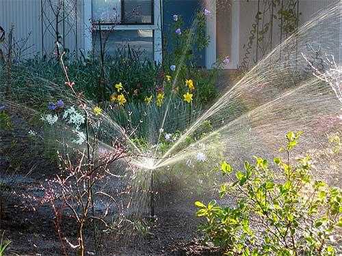 - Значительно меньший расход воды в сравнении с ручным поливом с помощью шланга или лейки;
