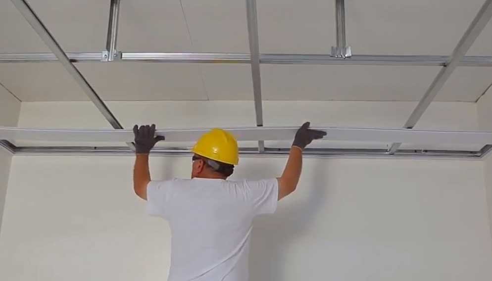 К получившемуся основанию саморезами крепится вся пластиковая фурнитура, если она предусмотрена конструкцией собираемого потолка. После этого, можно переходить к монтажу самого покрытия.
