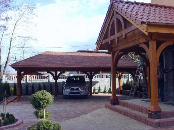 Для стоянки автомобиля так же существуют свои параметры деревянного навеса: ширина машины+1 м с каждой стороны, если на 2 авто, то учесть между ними + 0,8 м, длина 4-6 м, в зависимости от класса.