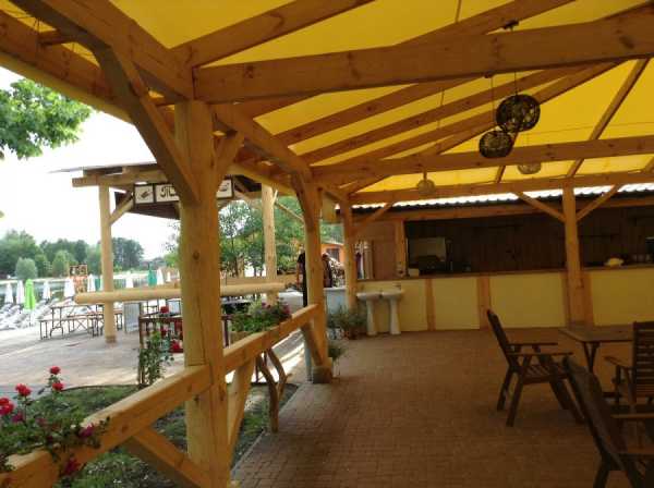 - Навес из дерева смотрится естественнее, находясь под ним, ты чувствуешь себя уютно почти как дома.