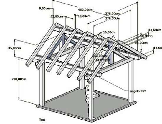 Двускатные, конусные, вальмовые крыши для навесов требуют грамотного подхода к устройству стропильной системы. Обычно это отдельно стоящие сооружения, приспособленные под беседку, летний домик. Каркас и верхняя обвязка делается из бруса 100*100, 150*150 мм, а ферма из доски 150*40 мм, для комфорта можно соорудить парапет, зашить бока решетками, прозрачным листовым материалом, высадить плетущиеся растения, виноград.