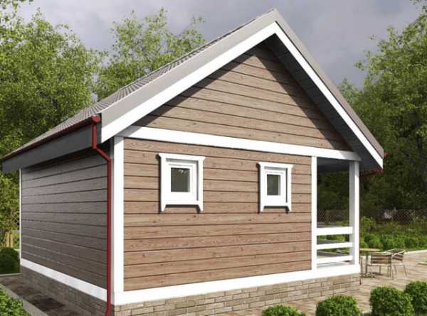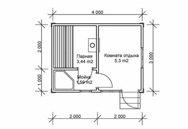 Можно для экономии материалов обустроить под предбанник пристроенную веранду и тогда внутри небольшой банной постройки будет достаточно места для моечной и парилки.