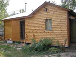 - Блокхаус. Каркасная баня, фасад которой облицован этим новейшим материалом, внешне выглядит как бревенчатая конструкция. Отличить такую постройку от настоящего сруба практически невозможно.