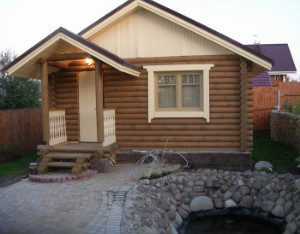Неплохо смотрятся натуральные имитация бруса и блок-хаус. Они изготовлены из дерева баня не утеряет экологичности. А отличить от бани из бруса или оцилиндрованного бревна конструкцию будет сложно.