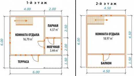 Выбор размера бани зависит от величины участка. Если вы являетесь владельцем большой по площади территории, то можете позволить себе сделать просторную баню, но главное не переусердствовать. Чем больше площадь парной, тем дольше она будет нагреваться, что увеличивает расход топлива.
