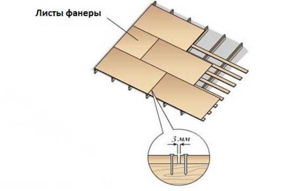 - Далее на гидроизоляцию сверху настилается фанера или деревянные доски. Так как подшивной потолок достаточно прочен, то получившееся пространство под крышей можно использовать как чердак или мансарду.