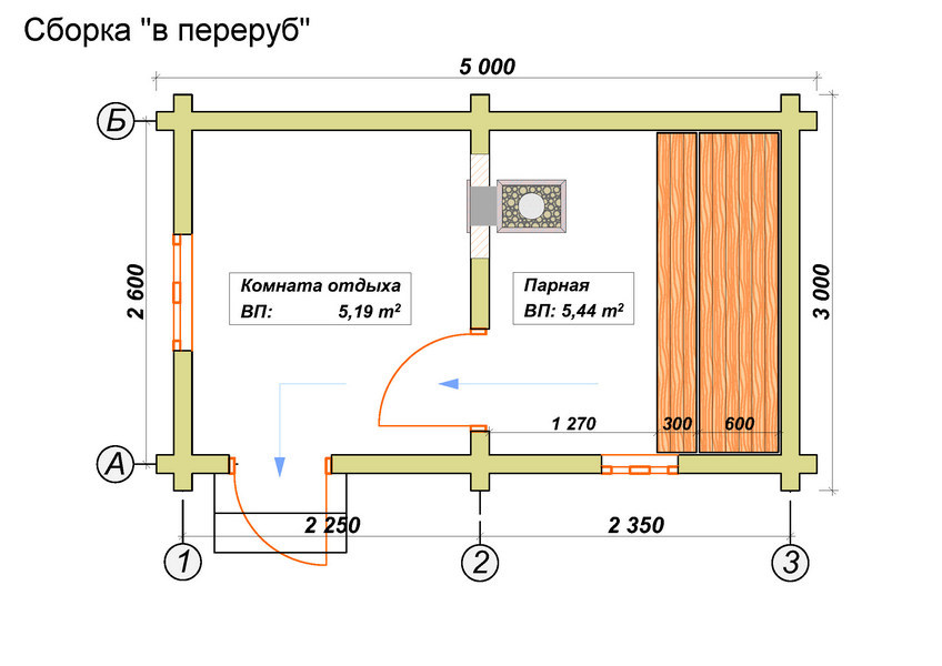 Сруб бани 3х5 планировка