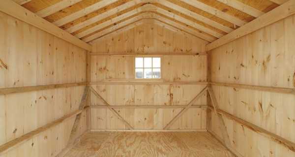 Вы почти решили задачу, как построить каркасный гараж, теперь подумайте о внутреннем обустройстве и прочитайте нашу следующую статью. Потолок можно обшить вагонкой, сверху нее укладывается один слой бумаги и утеплителя. На чердачный пол укладывают доску толщиной 25 мм и устанавливают приставную лестницу.