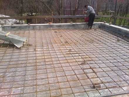 - На готовую поверхность укладываются две металлические армирующие сетки. Это сделает конструкцию более прочной.