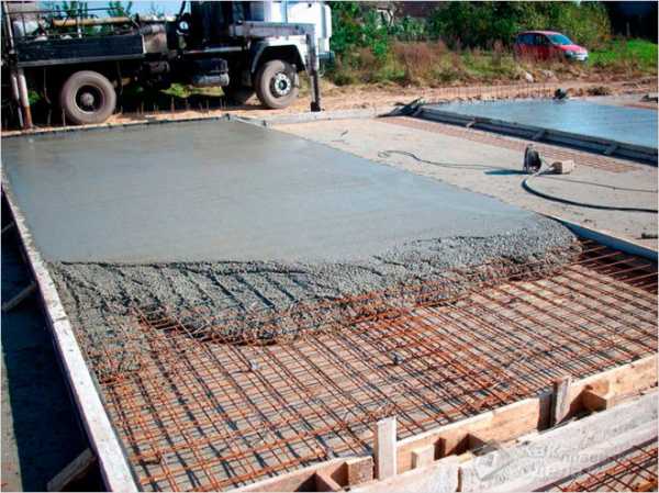 - Основание заливается бетоном. После этого фундамент должен просохнуть в течение трёх недель.