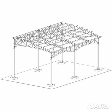 Металлические арочные навесыКаркас, выполненный из металлопроката, отличается надежностью и высокими прочностными характеристиками. При изготовлении используются металлические уголки, швеллеры и профильные трубы различного сечения, в зависимости от нагрузки и общей геометрии. Фермы представляют собой параллельные плоскости треугольной, полукруглой или прямоугольной формы, состоящие из верхнего и нижнего пояса с внутренней решеткой усиления.