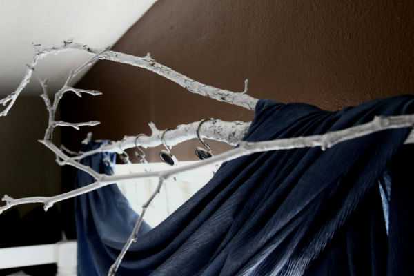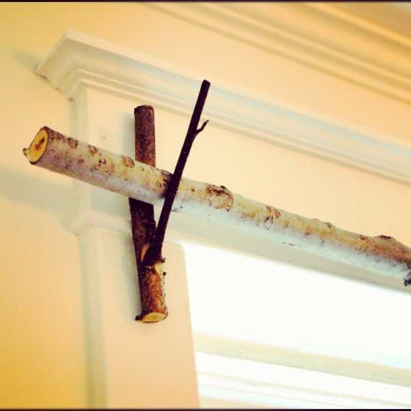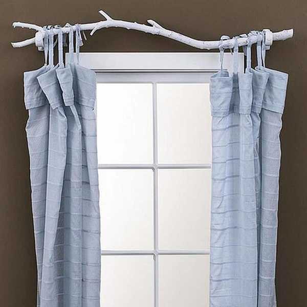 Чтобы сделать карниз для штор этой формы потребуются деревянный брус круглого сечения для направляющей (достаточно сечения около 3-5 см в диаметре). Длина бруса должна быть достаточной для того, чтобы закрыть оконный проем, при этом брус должен выступать за пределы оконного проема примерно на 15-30 см с каждой стороны. Так для оконного проема шириной в 1 метр потребуется направляющий брус 1,4 м в длину.