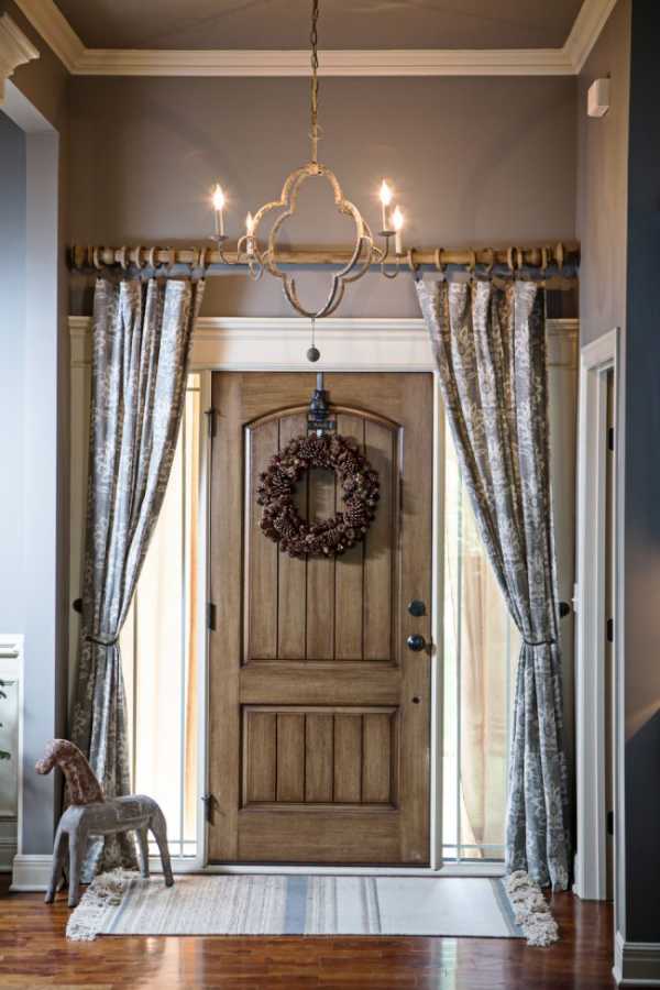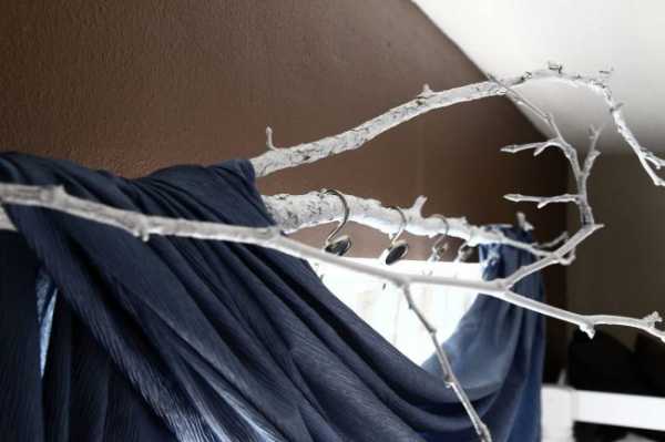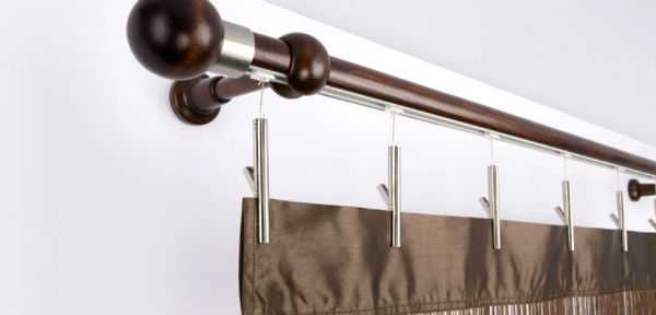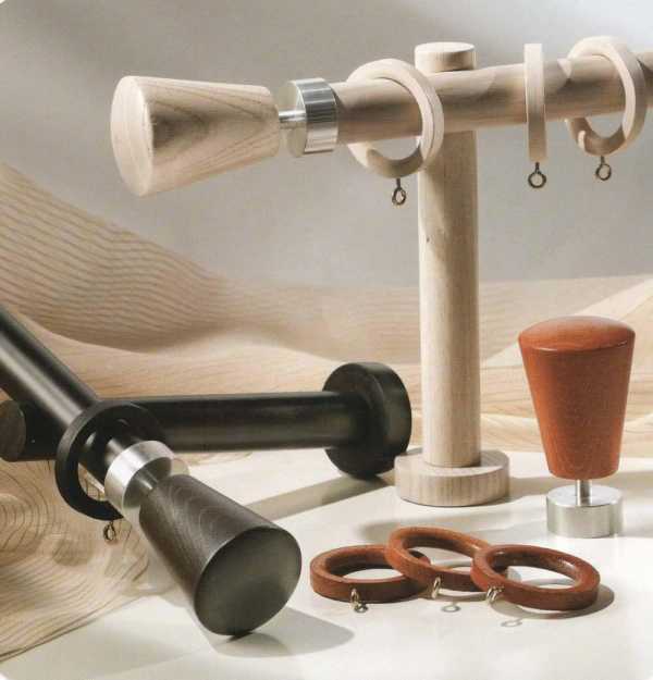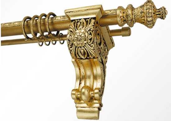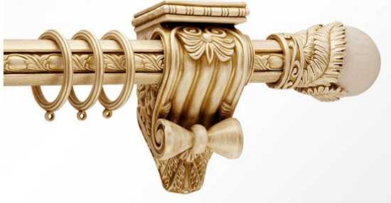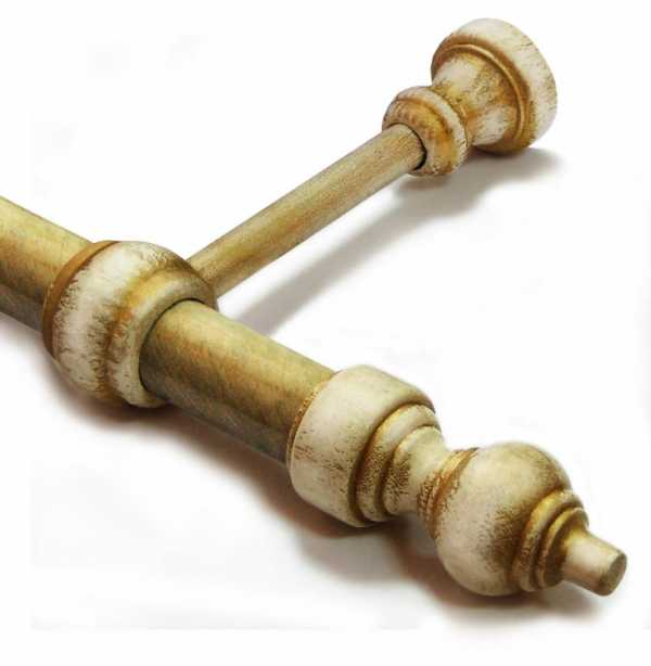 Он представляет собой длинную круглую палку с фиксаторами в виде колец. Его широко применяют в стиле кантри и прованс. Красивые детали на поверхности дерева добавляют элемент роскоши в дизайн помещения.