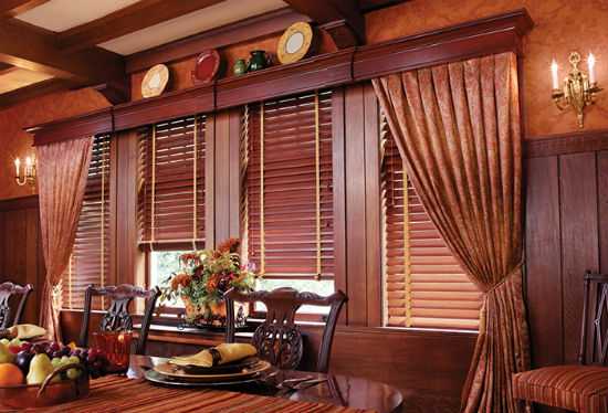 Деревянные карнизы подходят для всех видов штор. С ними прекрасно сочетаются как натуральные, так и синтетические ткани.