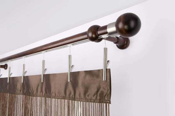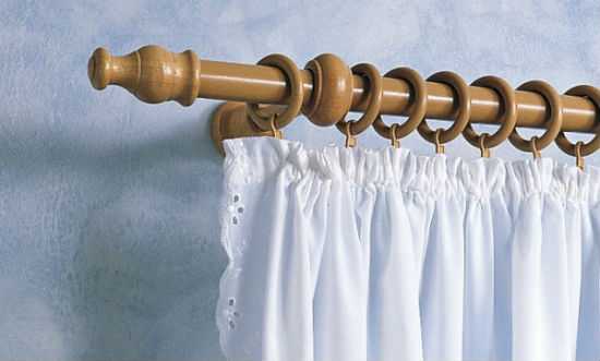 - 1 Длина. При подборе длины следует учитывать, что круглый деревянный карниз должен быть несколько длиннее ширины окна, примерно на 10 см с той и другой стороны.
