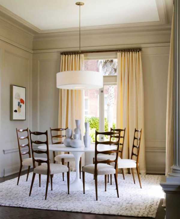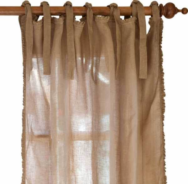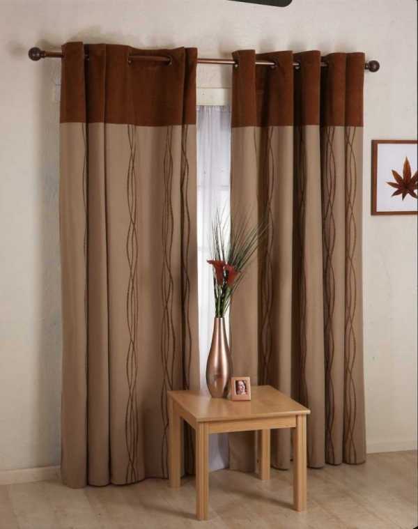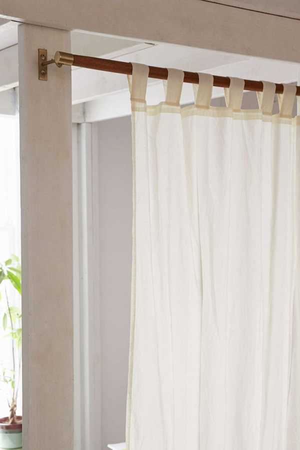 Для светлых штор на петлях круглый карниз из темного дерева подходит больше всего.