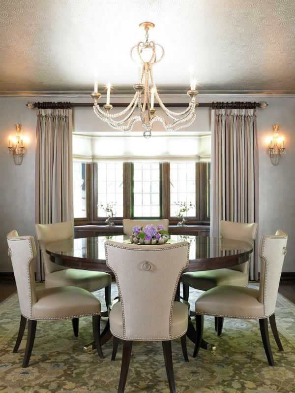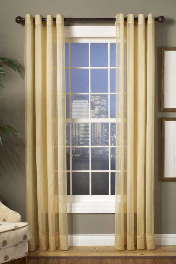 Большие кольца-фиксаторы отлично держат любую модель штор. Подчеркнуть всю красоту такой конструкции помогут более тяжелые ткани в сочетании с невесомым тюлем.