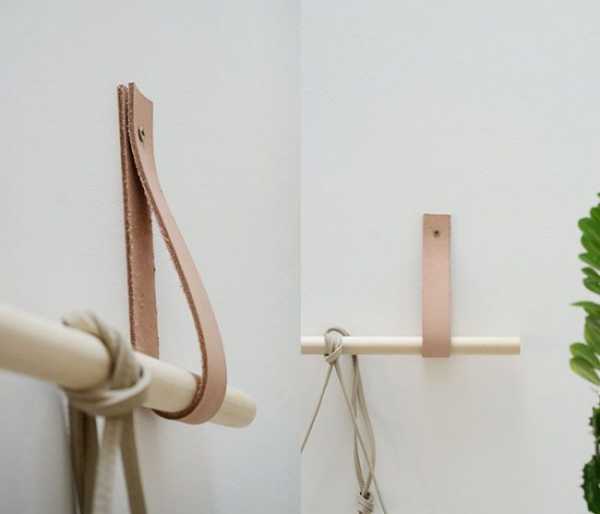 Чистая функциональность и вместе с тем стильная деталь для скандинавского интерьера: самодельный карниз из некрашеного дерева и кожаного ремня