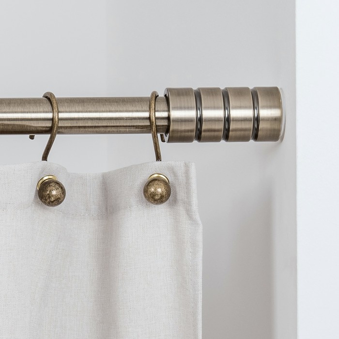 Хотя есть только два размера, телескопические стойки могут вмещать окна шириной от 36 до 144 дюймов. Этот стальной набор представлен в матовом никеле, пушечной бронзе, матово-черном цвете и протертой маслом бронзе со всем необходимым для установки оборудованием, а также двумя простыми навершиями.