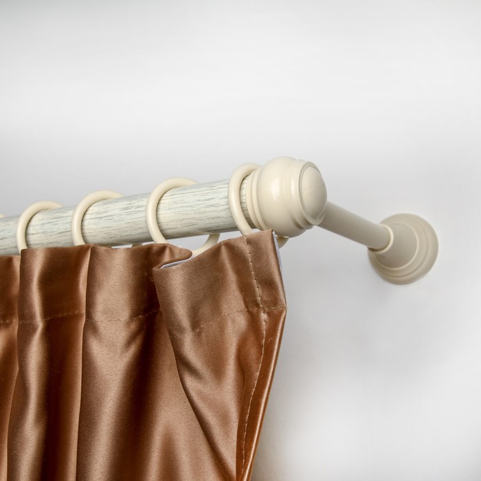 Деревенская эстетика уравновешена традиционной резьбой и круглыми наконечниками на каждом конце и доступна в трех размерах. Регулируемые стержни подходят для оконных рам шириной от 28 до 144 дюймов и поддерживают шторы весом до 15 фунтов. Помимо стойки, в комплекте идут декоративные накладки, кронштейны и все необходимое для монтажа.