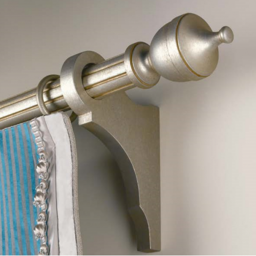 При помощи кронштейнов конструкции фиксируются на стене. Обычно они изготавливаются из того же материала, что и рабочая часть конструкции. Кронштейны могут выполнять не только практическую, но и декоративную функцию. Наибольшим разнообразием отличаются крепежи, на которые закрепляются металлические навесные карнизы для штор. В ассортименте есть лаконичные, простые модели, сложные кронштейны, изготовленные художественной ковкой.