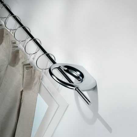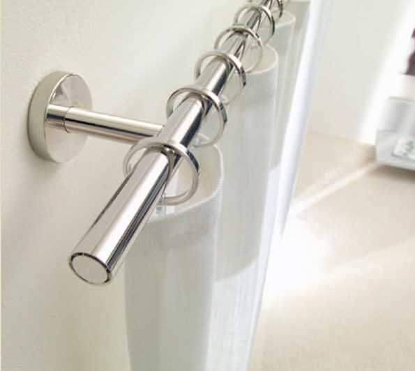 В круглых настенных конструкциях есть уникальный подход к этим деталям. Внутренняя часть металлических колец делается из пластика — таким образом, трение о саму штангу минимизируется и позволяет занавесям двигаться бесшумно. Кольца подсчитываются в соотношении: 10 штук на 1 м.