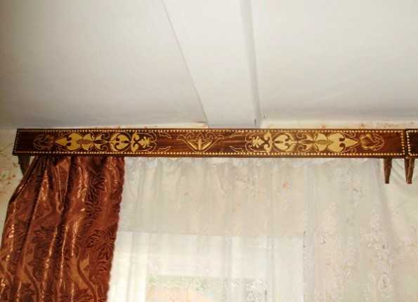Деревянный настенный карниз с оригинальными зажимами для занавесок