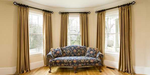 Также немаловажным фактором можно считать величину и форму помещения. Например, полукруглые эркеры зачастую довольно сложно оформить прямыми штангами. В этом случае больше подходит изогнутый по желаемой форме профиль.