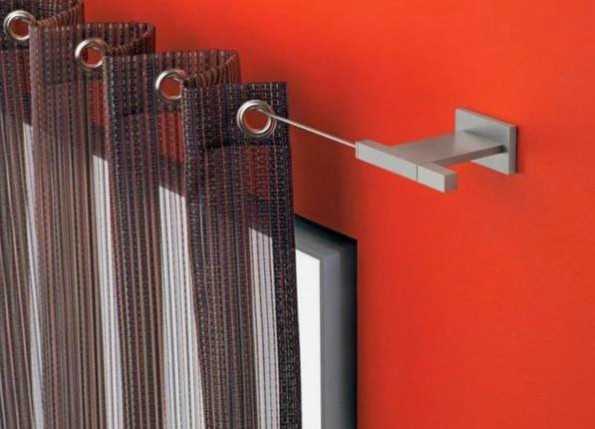 Безусловно, наименее заметен тонкий трос, который скрывается под текстилем и держится на двух кронштейнах-натяжителях.