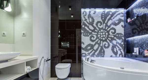 Плитка мозаика в чёрно-белом интерьере ванной комнаты