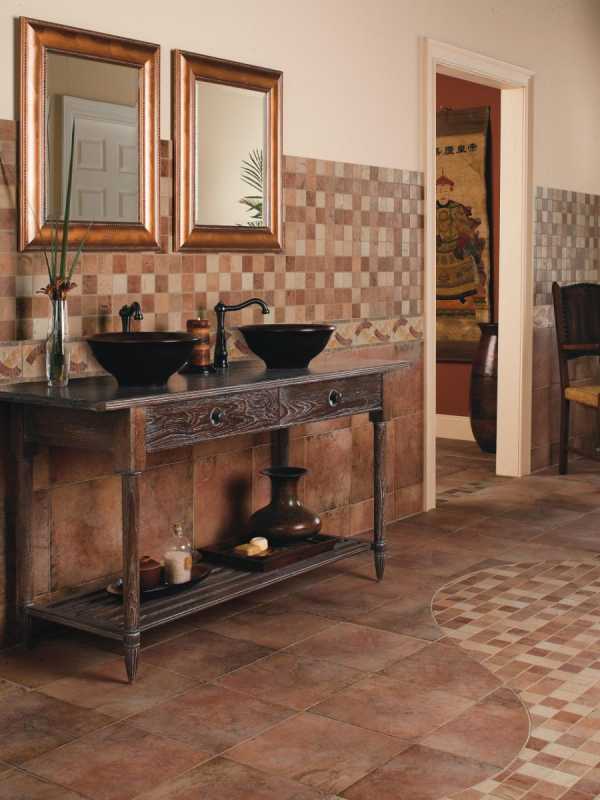 Для пола не подойдут все виды кафеля, поскольку здесь необходима устойчивость к большим нагрузкам. На его поверхности будут стоять различные предметы интерьера и ходить люди.