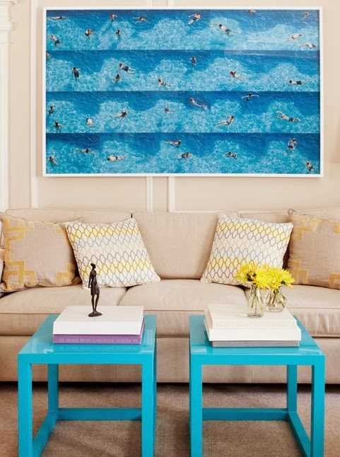 8. Масштабная картина Не слишком оригинально, но от этого не менее эффектный конечный результат. Лучшее место для большой картины или фото — в гостиной над диваном. Если вы находитесь в Питере — посмотрите вот этот вариант.
