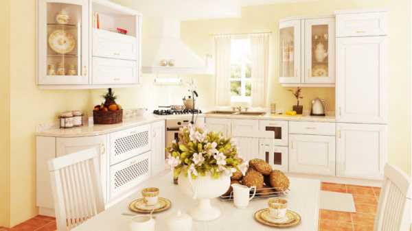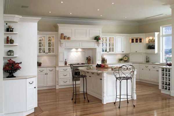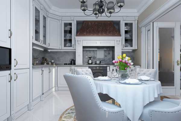 Белый цвет зрительно делает помещение более просторным, поэтому белая классическая кухня хороший вариант для не очень больших помещений. Для достижения гармоничности следует добавить к белому еще 1-2 оттенка.
