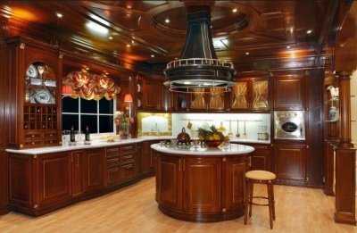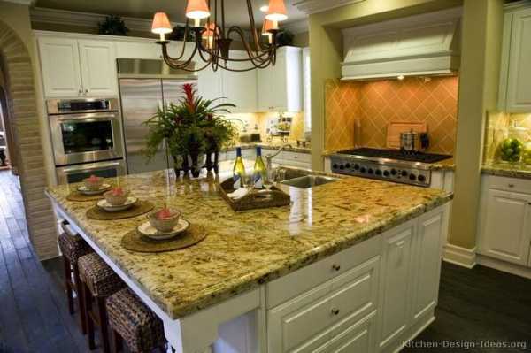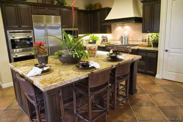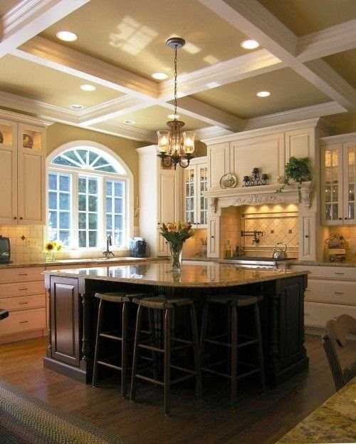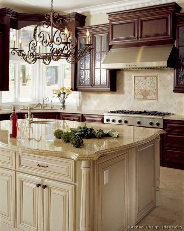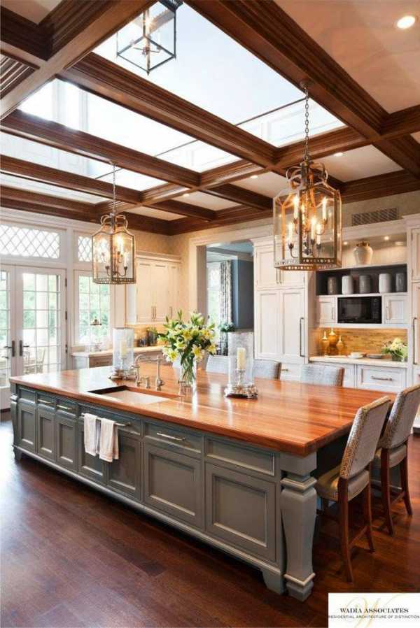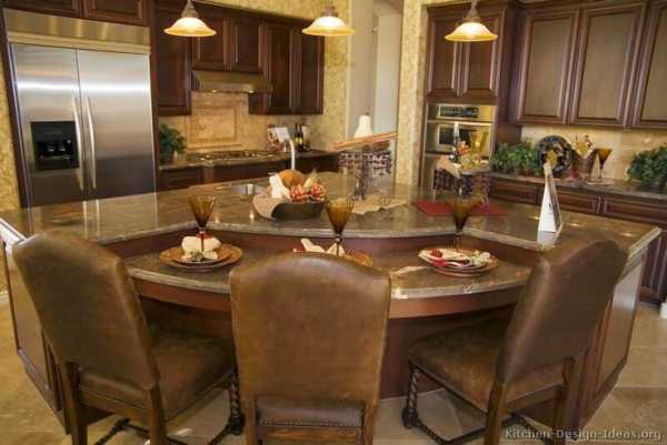 Мечта любой хозяйки – иметь просторную кухню! Красивую и удобную! Если твоя мечта уже исполнилась и ты уже стоишь перед выбором кухонного гарнитура, то теперь стоит получше представить кухню своей мечты. Первоначально надо бы определиться со стилем, а потом с планировкой и деталями. Если твой глаз радуют фигурные завитки из дерева и красивые фасады, то классический дизайн кухни согреет и успокоит твою романтичную натуру. Большая площадь дает возможность пофантазировать и создать великолепный и функциональный интерьер. Кухня с островом – это идеальная планировка, которая позволяет гармонично соединить зону приготовления и столовой. Классический дизайн предполагает большое множество вариантов оформления кухонного острова, где форма и финишная отделка играют главную роль. Представленный здесь дизайн кухни, фото подборка необычных островов помогут тебе определиться с дизайном кухни своей мечты.