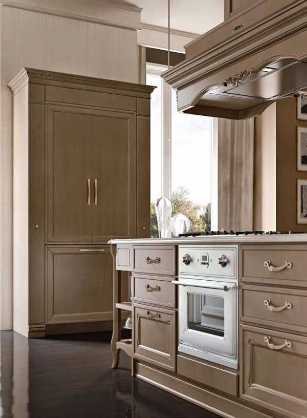 Если покупать на кухню технику, по дизайну выполненную в стиле ретро не хочется, то еще одно решение – встраиваемая техника. За натуральными фасадами можно будет надежно спрятать все современное, чтобы классическая кухня не потеряла своей аутентичности.