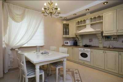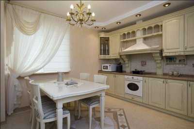 Оформлять окна текстилем нужно так, чтобы не выйти из рамок выбранного стиля, иначе интерьер будет выглядеть незавершённым. Для классической кухни завесить окна лучше всего лёгким тюлем, но подойдут и портьеры из достаточно плотной ткани.