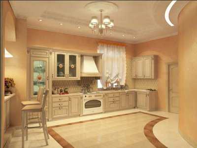 Кухня с главным бежевом цвете в интерьере, хорошо подчеркивает тонкий вкус хозяйки дома. Также можно использовать любые теплые светлые оттенки (светло-розовый, светло-оранжевый, светло-желтый), для придания нежности и особого настроения помещению.