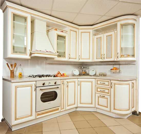 Фасады в классике встречаются гнутые или радиусные. Применяются они для навесных предметов. Например шкафов. Такие фасады дороже и увеличивают общую стоимость. Но смотрятся они очень красиво и дорого.