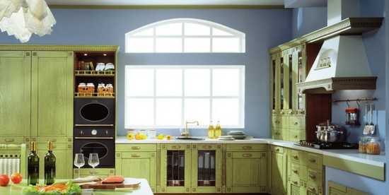 Стоит избегать ярких акцентов в голубом, зеленом, фиолетовом исполнении. Они придадут классической кухне намек на итальянский или средиземноморский стиль.