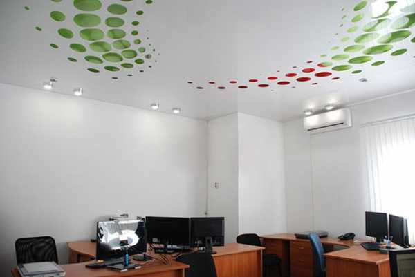 Для офисных и производственных помещений, требующих сосредоточенной работы сотрудников, печать используется редко. Однако, натяжные потолки — картинки будут уместны в «обще используемых» местах, где клиенты, партнеры и сотрудники общаются неформально. И там, где необходимо создать соответствующую обстановку. Применять такую отделку стоит только в помещениях, являющихся собственностью предприятия, поскольку арендованная недвижимость может потребовать смены декораций, в том числе и замены потолка.