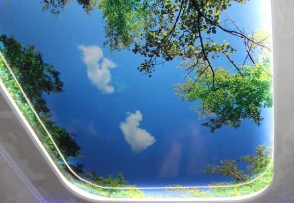 Глянцевое натяжное полотно с фотопечатьюОсобенность рисунка на потолке в том, что он способен изменять восприятие комнаты, даже невысокое помещение фотопечать зрительно расширит.