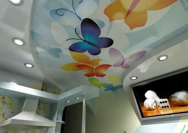 Фотопечать с рисункомОсновные преимущества подвесных потолков