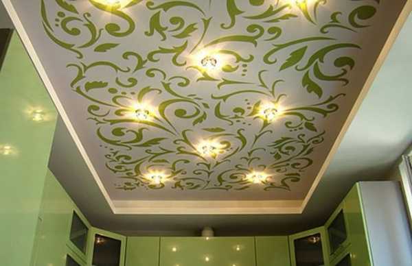 Хорошее решение – украсить подвесной потолок рисунком или узором. Но не все обладают художественными способностями. Есть выход – сделать узор по трафарету. Для этого используют плотный картон и вырезают острым ножом скопированный орнамент. Краску наносят губкой, чтобы она не подтекала под трафарет. Украшение потолка делится на этапы: