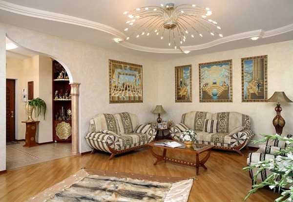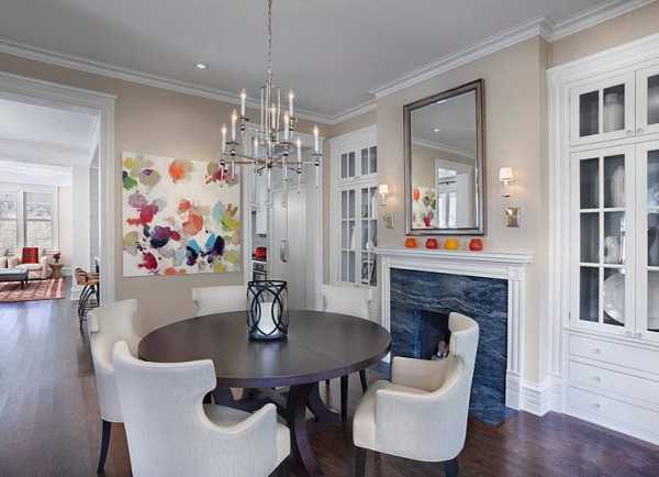 Здесь лучше всего размещать полотна с изображением пейзажей, абстрактных видений. Также могут подойти картины с изображением влюбленных пар. Если вам ближе полотна, возвышающие природную красоту, то следует помнить, что картины летней тематики вешают на южную сторону комнаты, зимней – на северную, осенней – на западную и северо-западную, а весенней – на восточную и юго-восточную. Кстати сказать, пейзажи дают свежесть и легкость городской квартире, в особенности, если за окном нет ничего цветущего ни летом, ни весной. Размещать художественный шедевр нужно на открытых пространствах вдали от прямых солнечных лучей. Многие размещают картины над диваном, в особенности любят совмещать несколько полотен, составляя тем самым гармоничную серию. А для тех, кто не хочет творчески поработать, мы предлагаем купить готовую серию. Это очень модное сочетание картин, где одна становится продолжением другой. Они уже подобраны производителями по размеру и рамке, что предоставляет гостиной некое единство и гармонию.