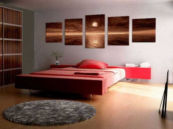 - В комнате не должно быть пустых стен. Изображения развешиваются с учетом расположения мебели и других предметов декора.