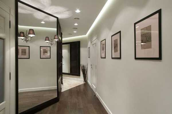- Для визуального расширения прихожей напротив рамки располагают зеркало. Изображения, отражаясь в зеркале, создают видимость объема. Этот прием актуален для узких коридоров.