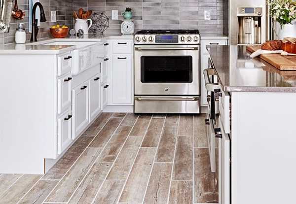 Керамическая и фарфоровая плитка, которая похожа по фактуре на дерево, идеально подходит для полов в кухнях, ваннах и других помещениях. Она легко чистится, а разнообразие цветов и формы позволяет выбрать подходящий для вашего интерьера вариант.