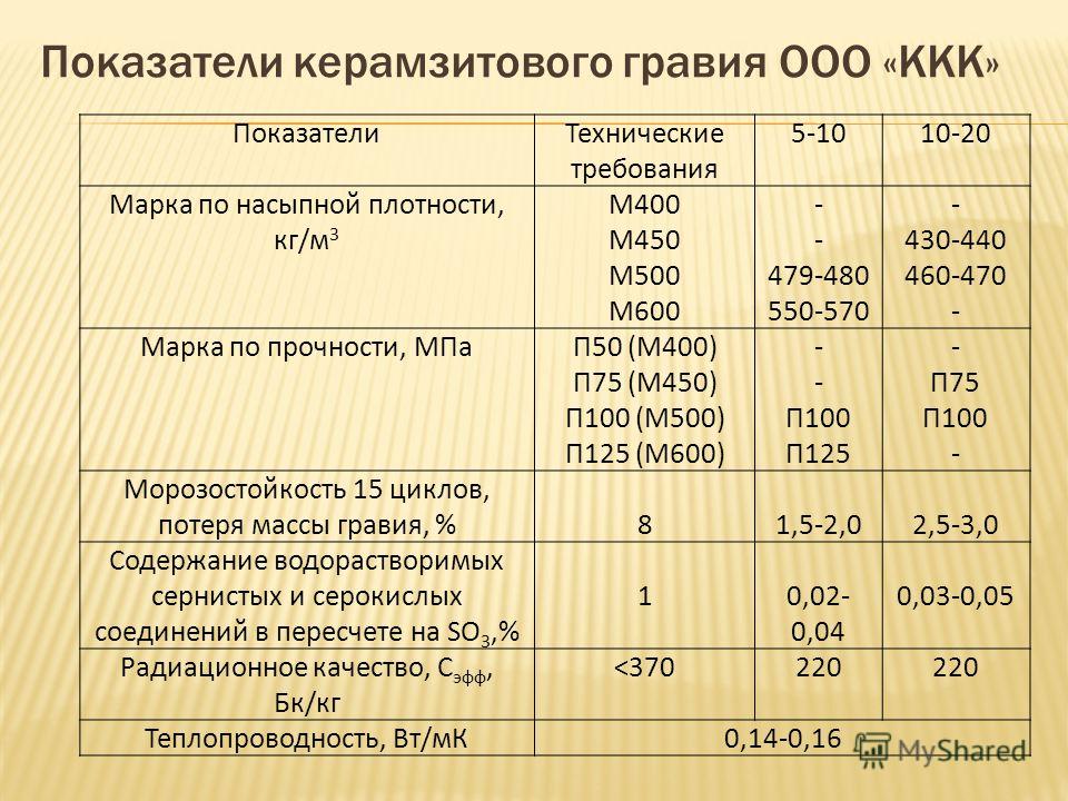 Так, если насыпная плотность керамзитового гравия имеет показатель менее 250 кг/м3, его марка М250.